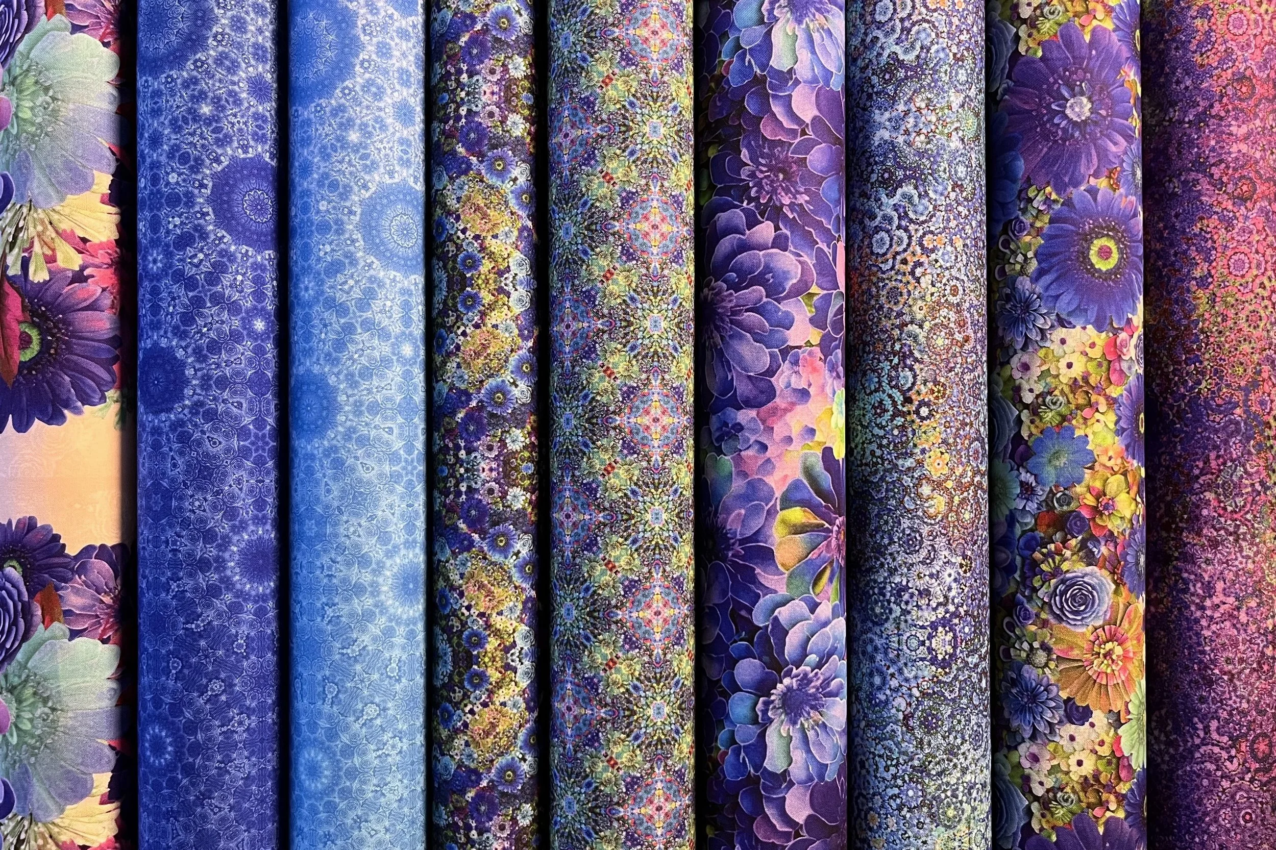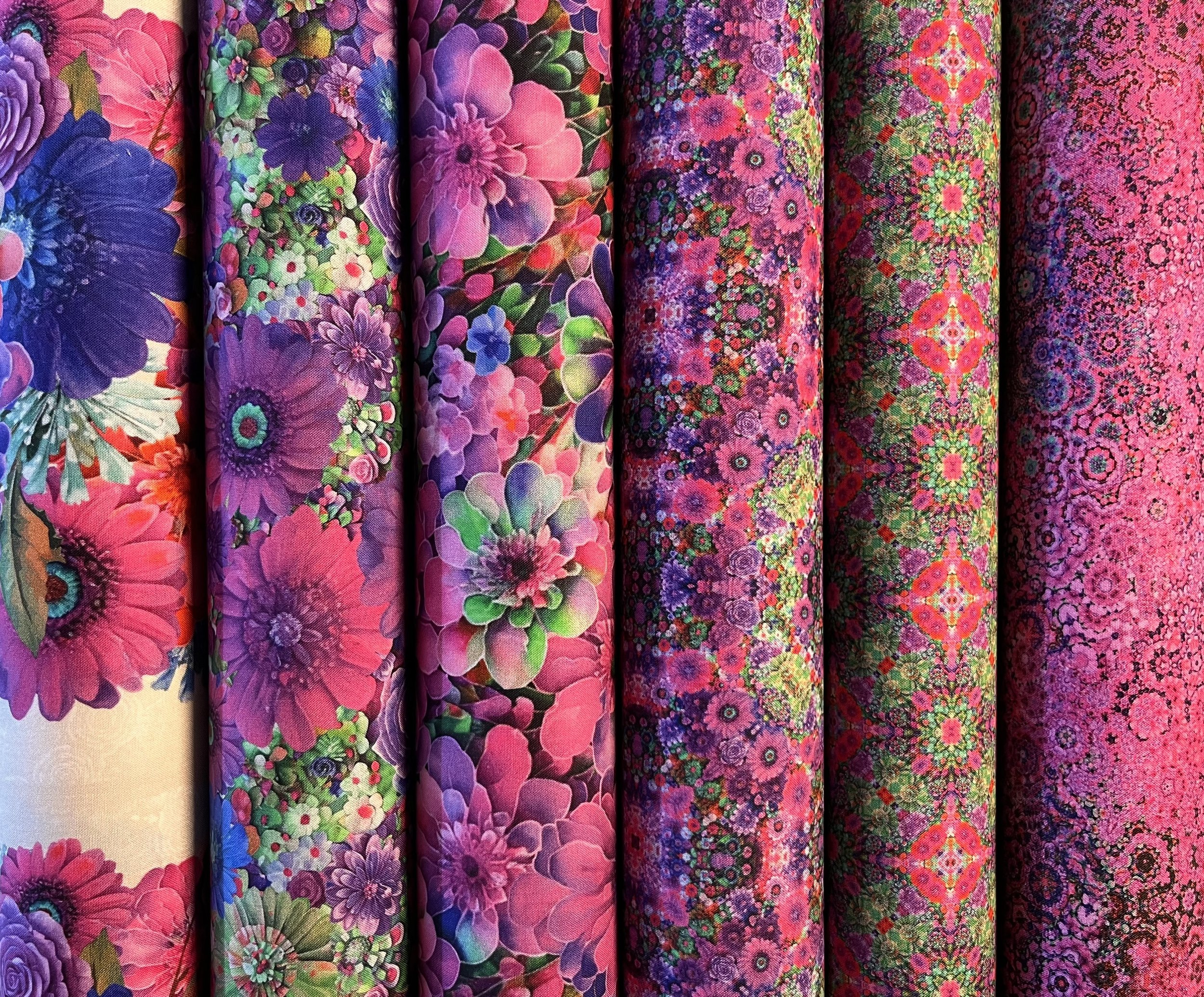 The Bloom! collection is a digital Spectrum Print produced by Hoffman California Fabrics. The collection will be available in the shops from April/May 2026.